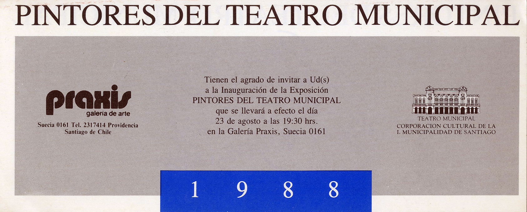 Pintores del Teatro Municipal 1988 Colectiva: Oscar Baeza, Johnny Bardelli, Roberto Farriol, Alejandro (mono) González